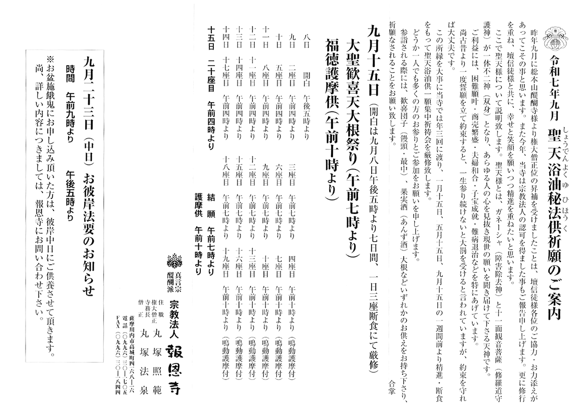 令和七年九月 聖天浴油秘法供厳修・鳴動護摩供のご案内